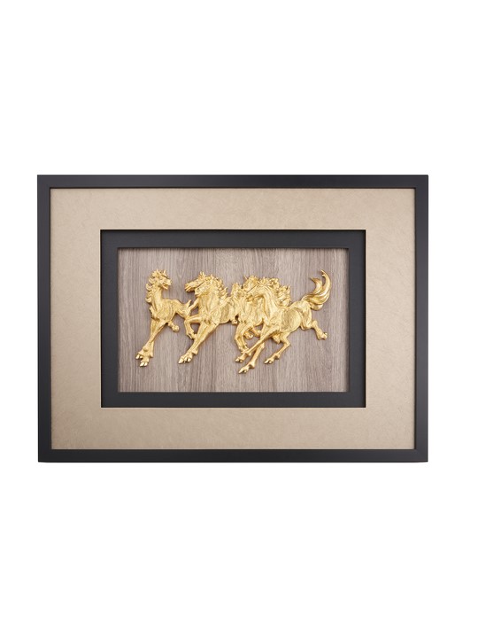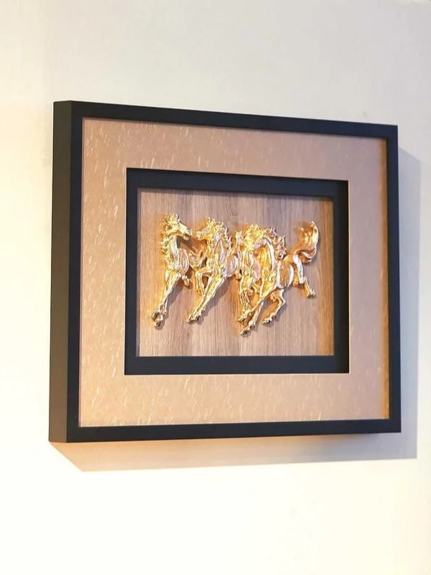 Bức tranh Lục Mã Sinh Tài với hình ảnh sáu chú ngựa oai phong cùng chạy về một phía biểu trưng cho sự đoàn kết, bền bỉ và sự thành công rực rỡ. Đây là biểu tượng phong thủy mạnh mẽ mang ý nghĩa may mắn và tài lộc. Thiết kế: • Hình tượng Lục Mã: Sáu chú ngựa được khắc họa với dáng chạy mạnh mẽ, hướng về một phía, thể hiện ý chí kiên cường và tinh thần đồng lòng. • Kích thước: Nhỏ gọn, phù hợp trưng bày trên bàn làm việc, kệ tủ hoặc các không gian sống sang trọng. • Chất liệu cao cấp: Sản phẩm được mạ vàng 24K, tôn lên vẻ đẹp sang trọng và giá trị phong thủy lâu bền. Chất liệu: Mạ vàng 24K, từng chi tiết được phủ vàng cao cấp, giúp sản phẩm giữ được độ sáng bóng và giá trị lâu dài. Kích thước: L53 x W3.8 x H42 cm Ý nghĩa phong thủy: • May mắn và tài lộc: Số "6" trong phong thủy tượng trưng cho "Lộc," mang lại sự thịnh vượng và phú quý. • Thành công: Hình ảnh ngựa phi nước đại báo hiệu tin vui và sự thành công vượt bậc. • Đoàn kết và tiến bước: Sáu chú ngựa cùng hướng về một phía biểu thị sự đồng lòng và tiến bộ không ngừng. Phù hợp trưng bày: • Phòng làm việc: Tăng thêm động lực, quyết tâm và sự may mắn trong công việc. • Phòng khách: Tôn lên sự đẳng cấp và mang lại phong thủy tốt lành cho gia đình. • Không gian hội họp hoặc văn phòng: Là biểu tượng của sự thành công và uy tín. Lựa chọn hoàn hảo: Tranh Lục Mã Sinh Tài là món quà đầy ý nghĩa dành cho các dịp đặc biệt như khai trương, tân gia, mừng thăng chức, hay kỷ niệm. Đây không chỉ là một tác phẩm nghệ thuật mà còn là biểu tượng phong thủy mang lại may mắn, tài lộc và sự phát triển bền vững.