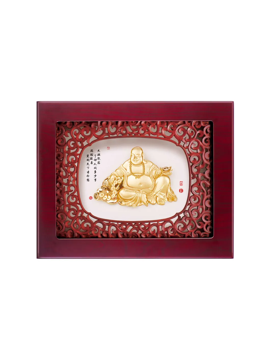 Phật Di Lặc là vị phật tượng trưng cho vị lai, cho thế giới tốt đẹp trong tương lai. Thờ Phật Di Lặc trong nhà là để cầu mong sự an lạc, vui vẻ, hạnh phúc, may mắn, bình an cho gia chủ. Chất liệu: vàng lá. Bảo quản nơi khô ráo. Kích thước: 27x34 cm