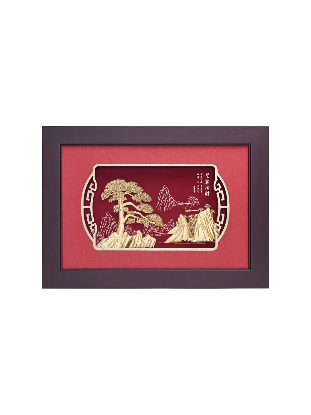 Trong các loài hoa mộc dược đó có dáng vẻ thanh cao, khỏe khoắn của cây Tùng. Cây Tùng cũng là đại diện cho các loài cây khác mang ý nghĩa trường thọ và đại diện cho khí tiết. Hơn nữa, cây tùng còn giúp xua đuổi tà ma, quỷ dữ mang đến sự bình yên cho con người. Chất liệu: vàng lá. Bảo quản nơi khô ráo. Kích thước: 36 x 50 cm