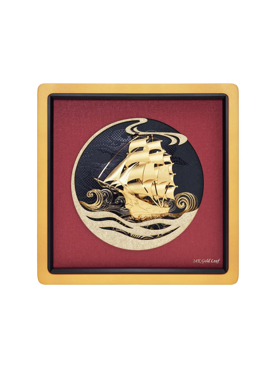 Theo phong thủy, thuyền buồm được xem là biểu tượng của thành công trong kinh doanh, mang ý nghĩa thuận buồm xuôi gió, đi đến nơi về đến chốn. Thường được sử dụng làm quà tặng giữa các đối tác kinh doanh. Chất liệu: vàng lá. Bảo quản nơi khô ráo. Kích thước: 30x30 cm