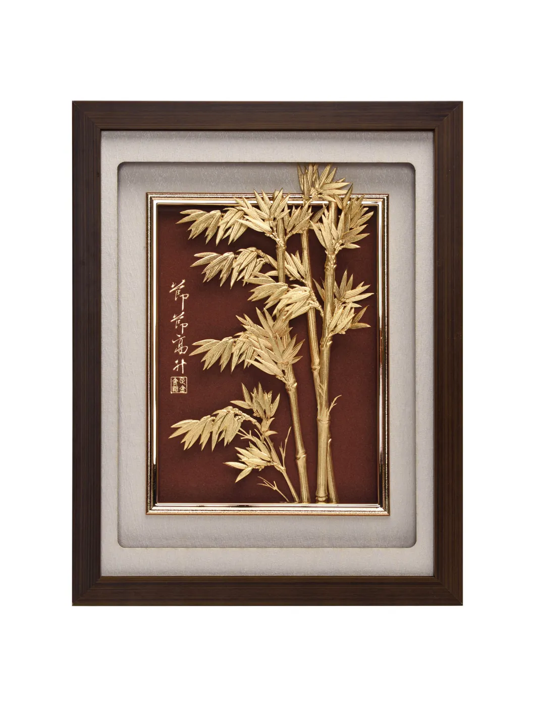 Tre là loài cây biểu hiện cho những truyền thống giá trị tốt đẹp của cha ông ta từ xưa đến nay, không bao giờ phai nhòa theo năm tháng. Cây tre là một trong những biểu tượng mạnh mẽ của sự trường thọ, tính kiên cường vượt qua mọi nghịch cảnh và khả năng chống chọi với sóng gió. Chất liệu: vàng lá. Bảo quản nơi khô ráo. Kích thước: 25 x 32 cm