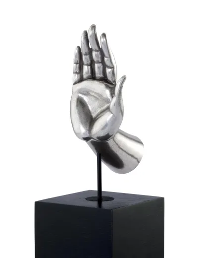 Trong tiếng Phạn, Abhaya có nghĩa là "không sợ hãi". Tượng Abhaya mang ý nghĩa là không lo lắng sợ hãi đồng thời thể hiện lòng nhân từ. Sản phẩm được làm từ pewter cao cấp, đặt trên gỗ Nyatoh màu đen.