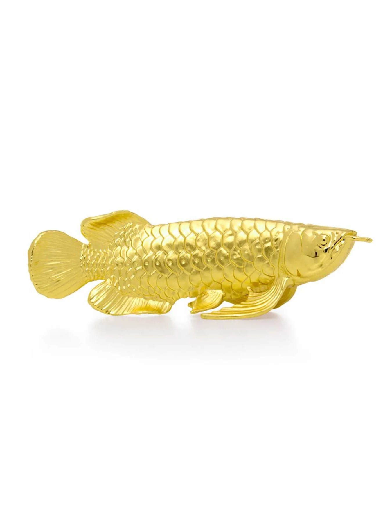 Tượng Cá Rồng Bảo Vật cỡ nhỏ tái hiện hình ảnh cá rồng uy nghi và thanh thoát - loài cá được mệnh danh là “Kim long” hay “Rồng nước” của châu Á. Với lớp mạ vàng Thụy Sĩ 24K sang trọng và kỹ thuật chế tác tinh xảo, từng đường vảy, dáng bơi đều được khắc họa sống động, mang đến vẻ đẹp quyền quý và trường tồn theo thời gian. Ý nghĩa: Trong văn hóa Á Đông, cá rồng tượng trưng cho sự thịnh vượng, phát tài và hưng thịnh. Được tin là mang khả năng trừ tà, hóa giải vận xui, chiêu mời tài lộc và bảo hộ bình an cho gia chủ. Là biểu trưng của sức mạnh, sự kiên định và khả năng vươn lên vượt qua thử thách. Chất liệu: Mạ vàng Thụy Sĩ 24K cao cấp. Bề mặt được xử lý chống oxy hóa, giữ màu bền đẹp theo thời gian. Kích thước: 174 x 43 x 52 mm (không bao gồm đế) Trọng lượng: 227g Sự lựa chọn hoàn hảo: Tượng Cá Rồng Bảo Vật cỡ nhỏ là món quà sang trọng, phù hợp tặng đối tác, khách hàng hoặc trưng bày tại gia, cửa hàng, văn phòng. Vừa là tác phẩm nghệ thuật, vừa là vật phẩm phong thủy hút tài lộc và may mắn