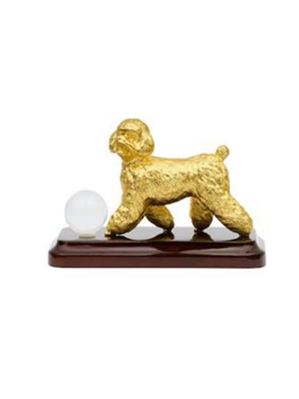 Tượng "Chó May Mắn" mang hình ảnh chú chó trung thành, đứng vững vàng bên cạnh quả cầu biểu tượng cho sự vẹn toàn và viên mãn. Được chế tác thủ công tinh xảo, sản phẩm sở hữu lớp mạ vàng Thụy Sĩ 24K sáng bóng, mang đến vẻ đẹp cao cấp và giá trị phong thủy. Ý nghĩa phong thủy: Chó: Trong văn hóa phương Đông, chó là biểu tượng của sự trung thành, bảo vệ gia đình và mang lại may mắn. Quả cầu: Thể hiện sự viên mãn, toàn vẹn và may mắn tròn đầy trong cuộc sống. Chất liệu: Tượng được chế tác từ chất liệu cao cấp, phủ lớp mạ vàng Thụy Sĩ 24K, bền bỉ và mang lại giá trị sang trọng. Thiết kế: Các chi tiết được điêu khắc tỉ mỉ, từ dáng đứng mạnh mẽ của chú chó đến bề mặt mạ vàng sáng bóng, tạo nên một tác phẩm nghệ thuật đẳng cấp. Sự lựa chọn hoàn hảo: Trang trí: Phù hợp để bày trí trên bàn làm việc, phòng khách, hoặc kệ trưng bày, mang lại cảm giác ấm áp và may mắn. Quà tặng: Là món quà ý nghĩa dành cho những dịp đặc biệt như tân gia, khai trương, hay mừng tuổi người thân, bạn bè. Tượng "Chó May Mắn Mạ Vàng" là sự kết hợp hoàn hảo giữa nghệ thuật chế tác tinh tế và giá trị phong thủy, mang lại tài lộc và may mắn cho gia chủ.