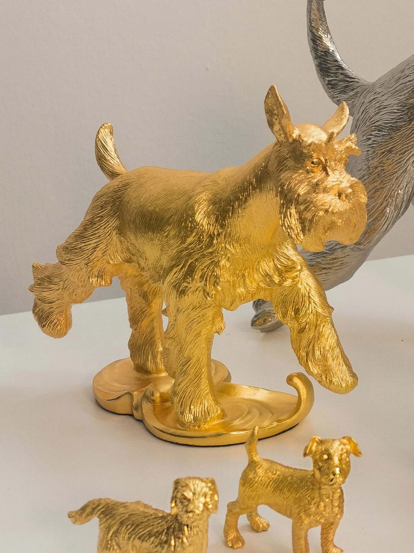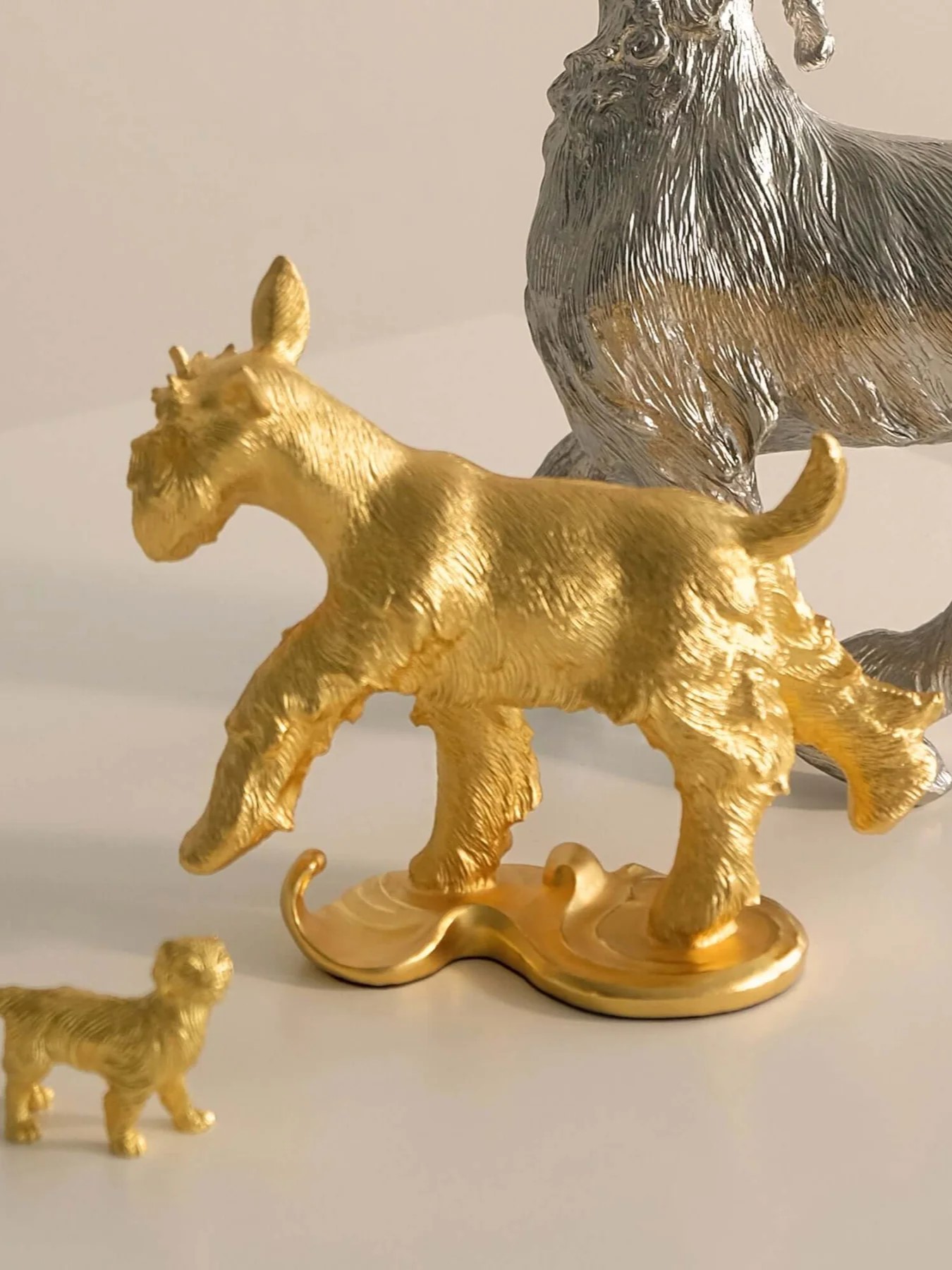 Tượng Chó Thành Công được thiết kế độc đáo, tái hiện hình ảnh chú chó trong tư thế vui vẻ, tự tin. Chú chó đang tiến dũng mãnh đến một vũng nước hình hồ lô – biểu tượng phong thủy của may mắn và phú quý – và biến nó thành vàng. Ý nghĩa phong thủy: Thành công và phú quý: Tượng mang thông điệp tích cực, tượng trưng cho khả năng biến cơ hội thành hiện thực và thành công rực rỡ. Lạc quan và tự tin: Hình ảnh chú chó vui đùa thể hiện tinh thần lạc quan, nhấn mạnh sự tự tin và khả năng nắm bắt cơ hội. Biểu tượng Hồ Lô: Trong phong thủy, hồ lô tượng trưng cho sự trường thọ, may mắn và tài lộc. Sự kết hợp giữa chú chó và hồ lô tạo nên biểu tượng mạnh mẽ của sự thịnh vượng và phát triển. Chất liệu: Được chế tác từ vật liệu cao cấp, mạ vàng 24K, tạo nên vẻ đẹp sang trọng và giá trị lâu dài. Thiết kế tinh xảo: Từng đường nét được chăm chút kỹ lưỡng để khắc họa sự sống động, mạnh mẽ của chú chó. Kích thước: Hoàn hảo để trưng bày trong phòng khách, bàn làm việc hoặc tặng đối tác và người thân. Tượng Chó Thành Công là một món quà lý tưởng dành tặng cho doanh nhân, lãnh đạo, hoặc những người đang hướng tới mục tiêu lớn trong cuộc sống. Đây không chỉ là một vật phẩm trang trí mà còn là lời chúc thành công, phú quý và thịnh vượng dành cho người nhận.