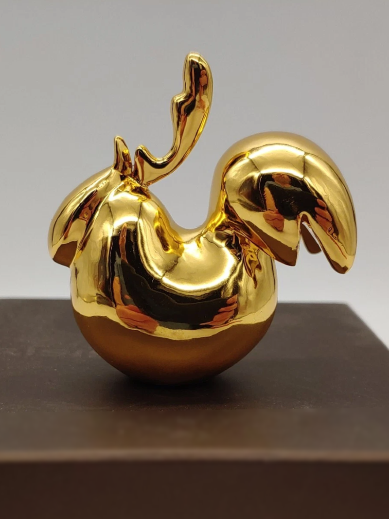 Bức tượng mô phỏng hình ảnh chú gà trống kiêu hãnh vươn mình, cất tiếng gáy chào đón bình minh, biểu tượng cho hy vọng, sức sống và khởi đầu đầy hứng khởi. Được RISIS chế tác tinh xảo với lớp mạ vàng 24K sáng bóng, sản phẩm không chỉ mang giá trị thẩm mỹ mà còn là biểu tượng của sự may mắn, thịnh vượng. Chất liệu: Tượng gà mạ vàng 24K, bề mặt được đánh bóng hoàn hảo. Thích hợp làm quà tặng ý nghĩa cho doanh nghiệp hoặc cá nhân trong các dịp khai trương, chúc mừng hay đón xuân mới.