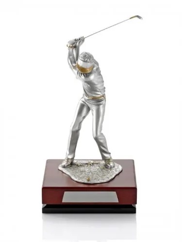 Tượng Golfer là sự lựa chọn hoàn hảo cho những người yêu thích môn thể thao quý tộc với hình ảnh Golfer đang thực hiện cú swing ngoạn mục. Tượng Golfer thích hợp làm quà tặng cho những tay golf hoặc giải thưởng trong các giải đấu. Sản phẩm được làm từ chất liệu pewter cao cấp, một số chi tiết được mạ vàng 24K. Sản phẩm đi kèm với đế gỗ tự nhiên.