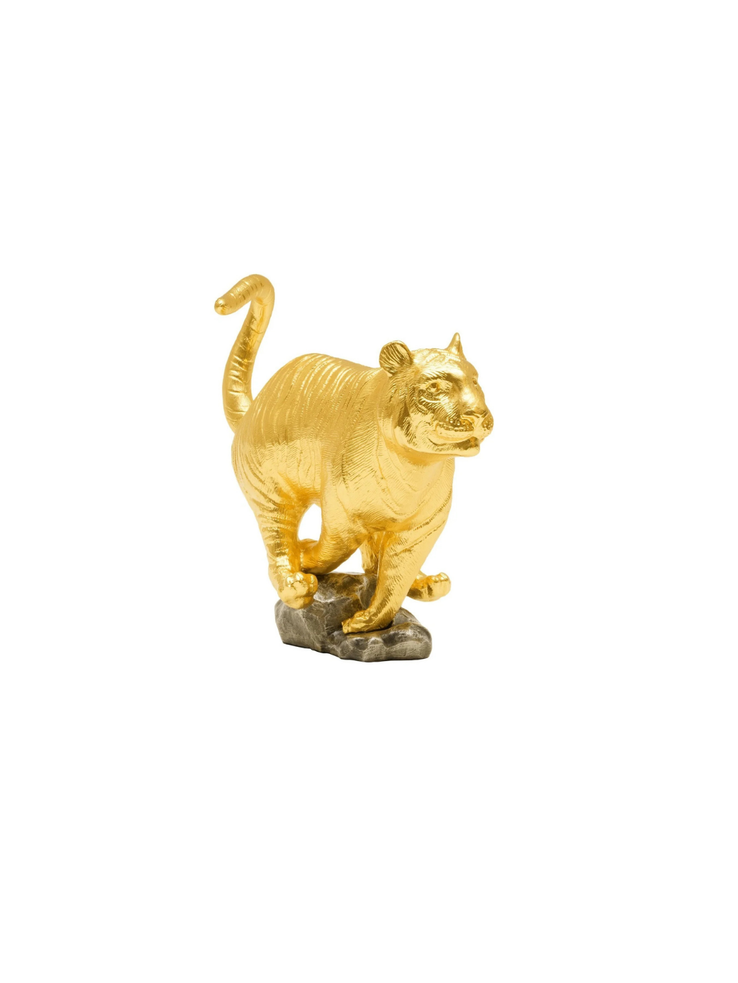 Tượng Hổ Hùng Dũng là một tác phẩm thủ công tinh xảo từ bộ sưu tập linh vật hoàng đạo RISIS – thương hiệu danh tiếng trong lĩnh vực chế tác quà tặng và vật phẩm phong thủy cao cấp. Tác phẩm thể hiện hình ảnh Chúa Sơn Lâm mạ vàng 24K trong tư thế rướn mình mạnh mẽ, toát lên thần thái dũng mãnh, tinh anh và quyền uy tối thượng. Ý nghĩa: Trong văn hóa Á Đông, Hổ là linh vật tượng trưng cho sức mạnh, lòng dũng cảm, trí tuệ sắc bén và tinh thần lãnh đạo. Hình tượng hổ mang hàm ý trừ tà, xua đuổi vận xấu, thu hút cát khí và mang lại thành công trong học hành, kinh doanh, công danh sự nghiệp. Đặc biệt phù hợp làm vật phẩm hộ mệnh cho người tuổi Dần, hoặc người theo đuổi mục tiêu lớn cần sự kiên định và quyết đoán. Chất liệu: Tượng được chế tác từ hợp kim pewter, sau đó mạ vàng Thụy Sĩ 24K bằng công nghệ hiện đại, giữ được độ bền và vẻ đẹp trường tồn. Đi kèm đế gỗ cao cấp tặng kèm từ RISIS trong bộ sưu tập Legend of XII. Kích thước: 230mm (Dài) x 110mm (Rộng) x 180mm (Cao) Trọng lượng: 2.7 kg (không hộp) | 3.6 kg (có hộp) Sự lựa chọn hoàn hảo: Là quà tặng lý tưởng cho doanh nhân, nhà lãnh đạo, người tuổi Dần hoặc những ai đang bước vào những giai đoạn trọng đại trong cuộc đời. Phù hợp trưng bày tại phòng làm việc, phòng khách hoặc không gian phong thủy để tăng cường quyền uy, tự tin và thành công.