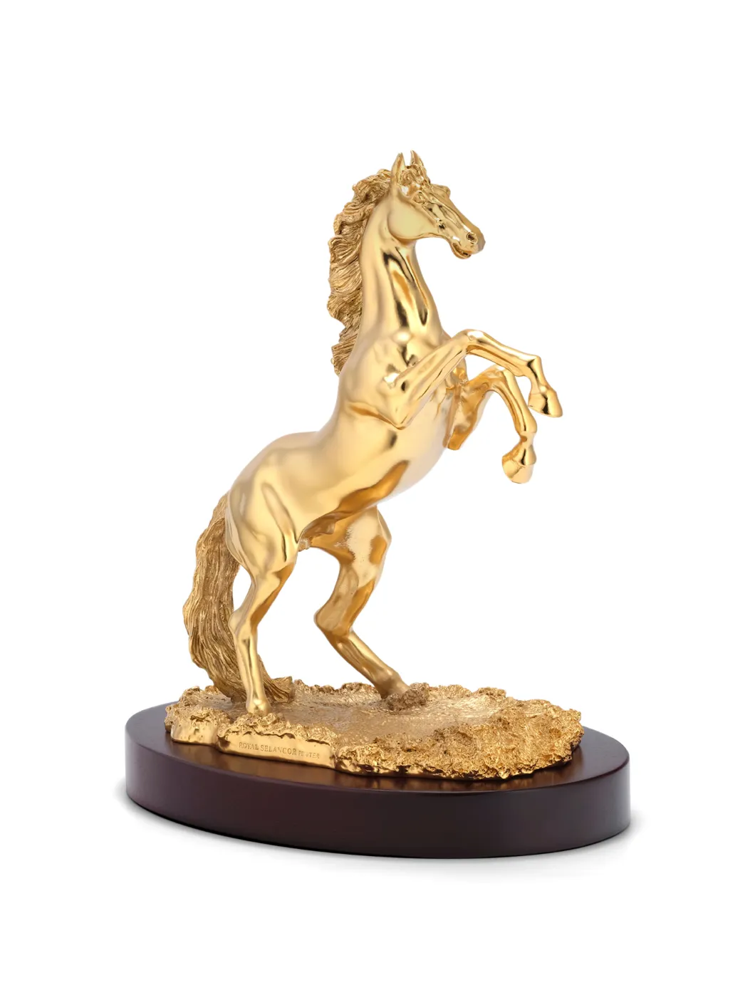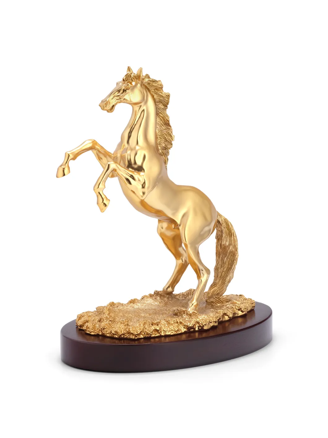 Ngựa là loài vật trung thành, dẻo dai, và mạnh mẽ. Bằng chuyển động uyển chuyển, mạnh mẽ mà tinh tế, cùng với tư thế vươn lên bầu trời, tác phẩm thể hiện khát vọng vượt qua mọi trở ngại, khó khăn trong cuộc sống cũng như công việc kinh doanh để dành chiến thắng. Sản phẩm được làm từ pewter mạ vàng 24K