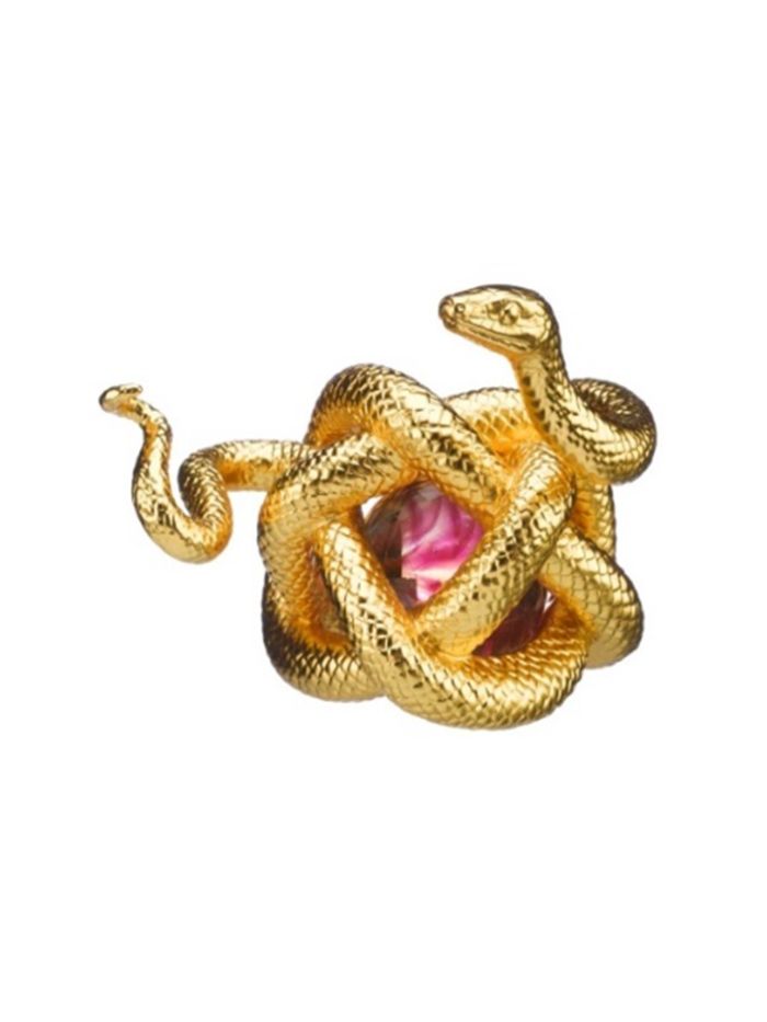 Tượng Rắn Phú Quý là một tác phẩm nghệ thuật đầy ý nghĩa, lấy cảm hứng từ dây kết ngọc bội với hai đồng xu lồng ghép, mang ý nghĩa may mắn và tài lộc nhân đôi. Chú rắn uốn lượn mềm mại, bảo vệ viên ngọc Liu Li quý giá, tỏa ánh sáng rực rỡ mỗi khi thay đổi góc nhìn. Ý nghĩa: May mắn và tài lộc: Hai đồng xu tượng trưng cho sự giàu có và thịnh vượng. Phú quý và bảo vệ: Chú rắn, biểu tượng của sự khéo léo và trí tuệ, ôm lấy viên ngọc như một lời chúc cho sự an toàn và hạnh phúc viên mãn. Tinh thần gắn kết: Kết hợp giữa vật chất và tinh thần, mang lại sự cân bằng trong cuộc sống. Chất liệu cao cấp: Thân rắn được khắc họa chi tiết và mạ vàng 24K, viên ngọc Liu Li tạo điểm nhấn với ánh sáng kim và ánh hồng rực rỡ. Kích thước: Dài: 150mm, Rộng: 110mm, Cao: 121mm Thiết kế tinh xảo: Từng chi tiết từ vảy rắn đến đường nét của viên ngọc đều được chăm chút tỉ mỉ, toát lên vẻ sang trọng và đẳng cấp. Sự lựa chọn hoàn hảo: Phong thủy: Đặt tượng ở phòng khách, văn phòng, hoặc không gian kinh doanh để thu hút năng lượng tích cực, kích hoạt may mắn và tài lộc. Quà tặng cao cấp: Phù hợp làm quà tặng trong các dịp lễ, Tết, hoặc các sự kiện đặc biệt dành cho đối tác, người thân, hoặc khách hàng quan trọng. Tượng Rắn Phú Quý không chỉ là một tác phẩm nghệ thuật mà còn là biểu tượng của sự giàu có và thịnh vượng, giúp mang lại may mắn và hạnh phúc lâu dài cho chủ sở hữu.